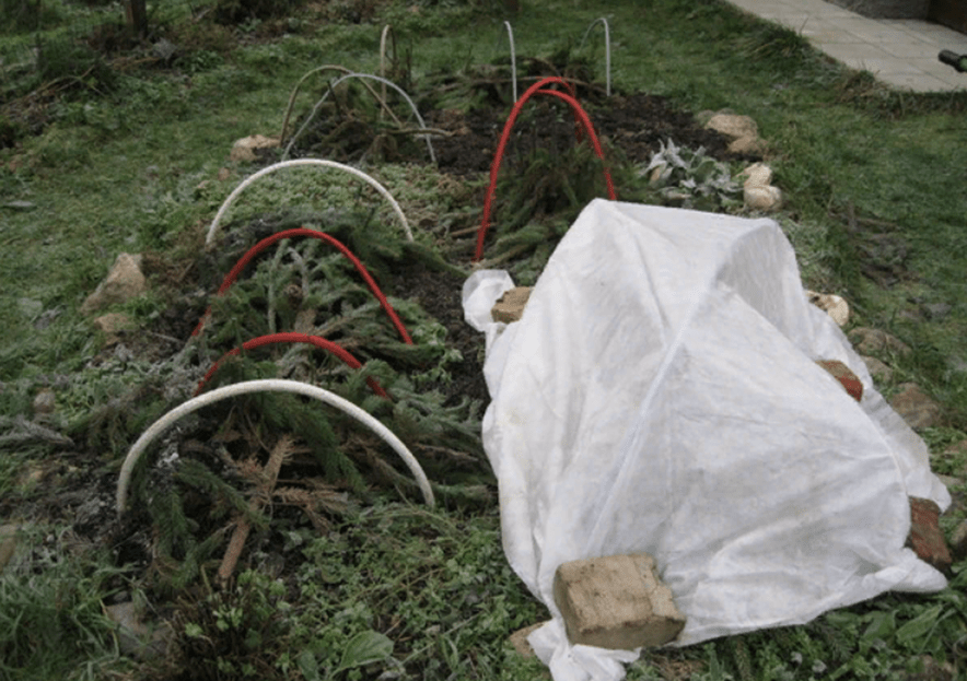 - Накрываем созданный «домик» полиэтиленом, который не пустит внутрь осадки и влагу.